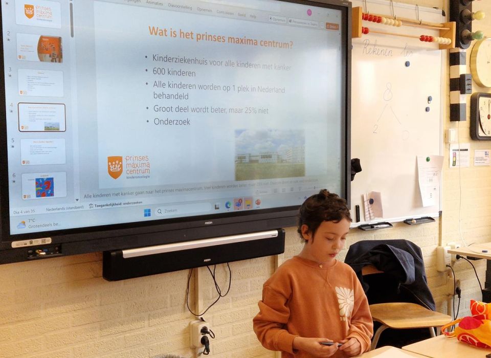 Gelukkig stijgen de neutrofielen nu weer. De medicatie mag daarom voorzichtig worden opgebouwd. Lize blijft voorlopig wekelijks onder controle. Wel vinden we het weer verantwoord dat ze naar school gaat. Dat is fijn nieuws, want de dag erna staat haar spreekbeurt gepland. Die kan ze nu gewoon in de klas geven. Ze wilde haar spreekbeurt graag houden over het Prinses Máxima Centrum en leukemie.